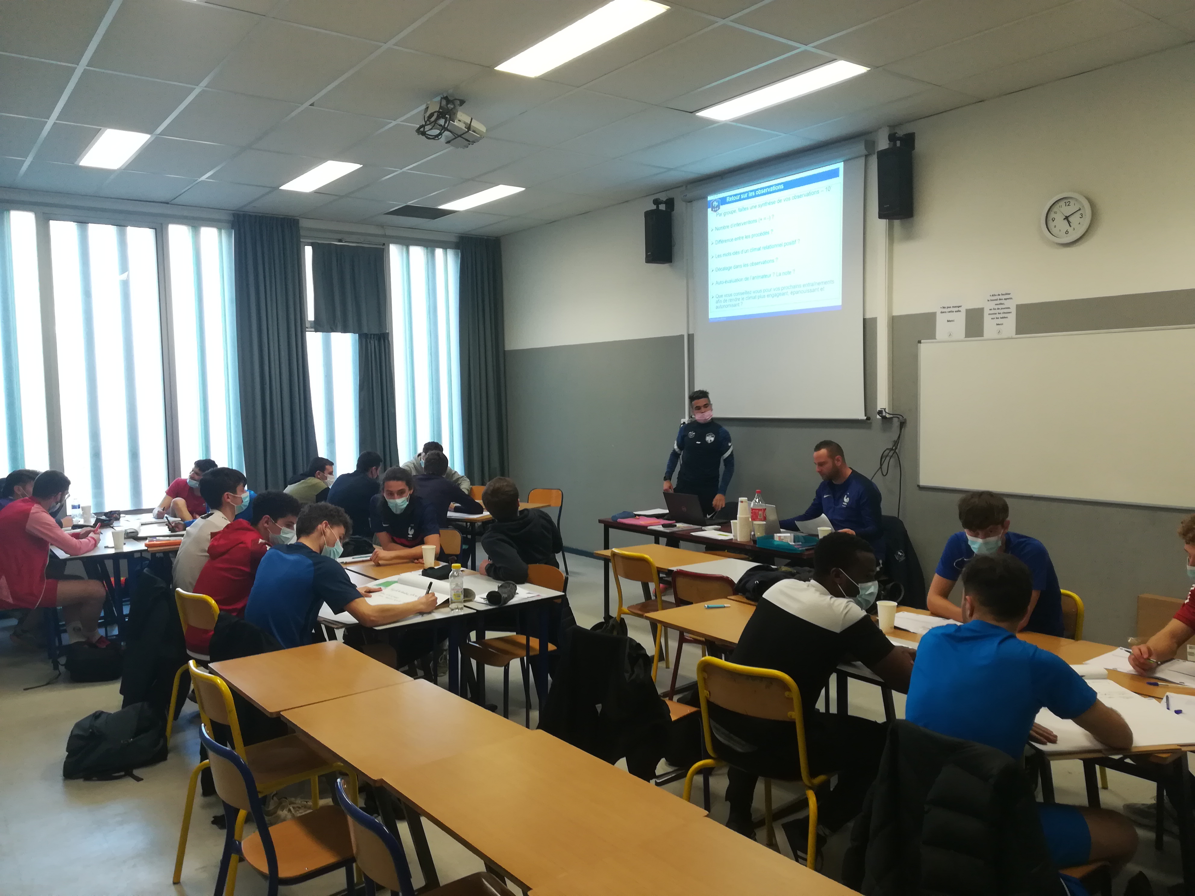 En février, 18 étudiants ont participé au module « Sécurité », qui vise à « prendre en compte la sécurité des pratiquants et de sécuriser l’environnement à la pratique du football ». Cette formation a été dispensée par des formateurs de la Ligue Occitanie de Football : Florian GILLY et Cyril GARSON.